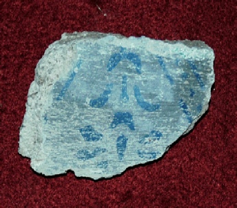 Beim Freilegen der Deckenbalken des Erdgeschosses fanden sich im Zwischenboden inmitten von jeder Menge Dreck auch Putzfragmente, auf denen eine blaue Schablonierung erkennbar war. Es handelt sich dabei sicherlich um Reste der ehemaligen Putzoberfläche des Hausbodens oder des angrenzenden östlichenZimmers. Heute bestehen diese Wände lediglich aus den Fachwerkhölzern, sämtliche Gefachefüllungen und erst recht die Verputzungen wurden vom Vorbesitzer entfernt, so dass wir uns über dieses kleine Stückchen Putz (ca. 10 cm) richtig freuten.