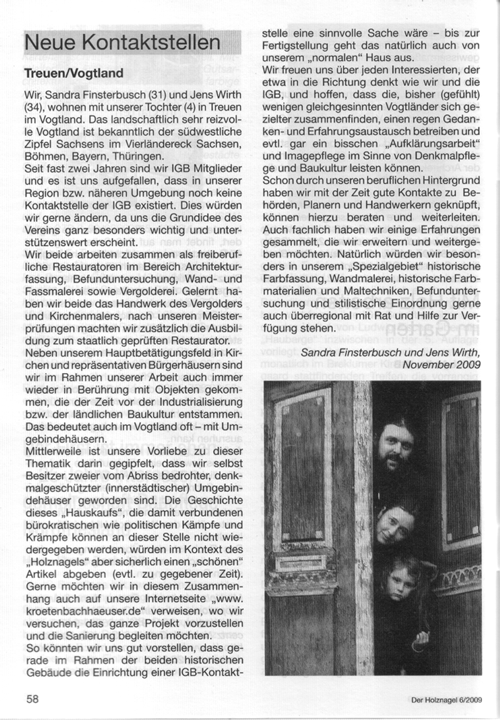 Unser „Vorstellungsartikel“ im „Holznagel“, der Zeitschrift der IGB