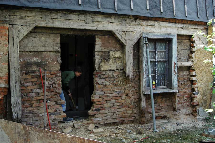 Vor Durchführung solcher „Freilegungsarbeiten“ muss das Gebäude natürlich fachmännisch gesichert und abgestützt werden!