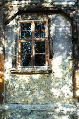 Das Giebeldreieck des Dachgeschosses besaß, wie gesagt, eine Verschieferung aus grauem Kunstschiefer. Da hier keine Holzreparaturen notwendig waren, entschlossen wir uns, diese Verkleidung vorerst zu belassen, da sie noch völlig intakt war. Für eine bessere Optik griffen wir in die „Trickkiste“ und strichen die hässlich grauen Platten in einem schieferfarbenen Ton, so dass man auf den ersten Blick glauben mag, es handelt sich wirklich um Naturschiefer... (Auf dem Foto ist diese Arbeit gerade zur Hälfte vollbracht).