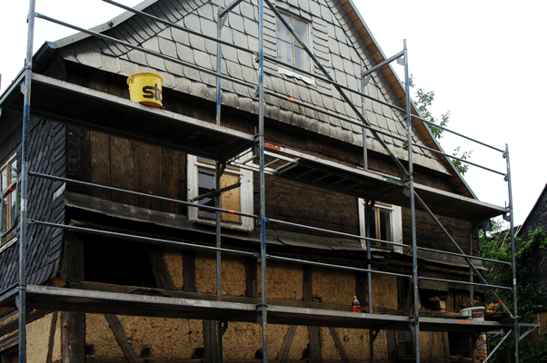 h Gerüst stellen. Zuerst musste die Kunstschieferverkleidung aus DDR-