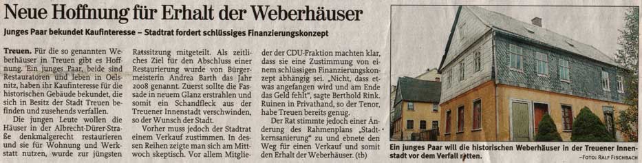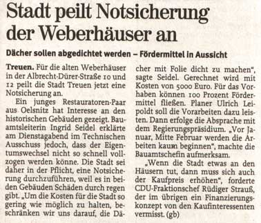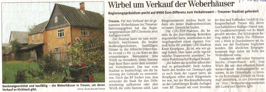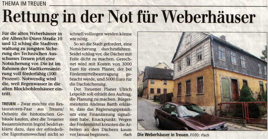 Jens als Ortsansässiger hatte das Hin und Her um die „Weberhäuser“ stets aufmerksam verfolgt, alle Zeitungsberichte gesammelt.
